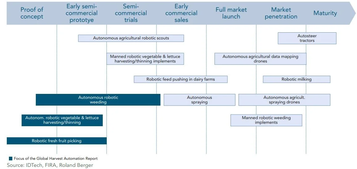 Ce critère dépendre de va dépendre de vos attentes et vos besoins. Pour le moment, seuls les robots de traites ont atteint une certaine stabilité et maturité technologique. Les robots agricoles qui évoluent dans nos champs, en désherbant, pulvérisant ou récoltant, en sont encore au début de leur commercialisation, voir en phase de développement. Et lorsqu’on pense à acheter un robot, il est important de comprendre dans quelle phase se situe le produit.