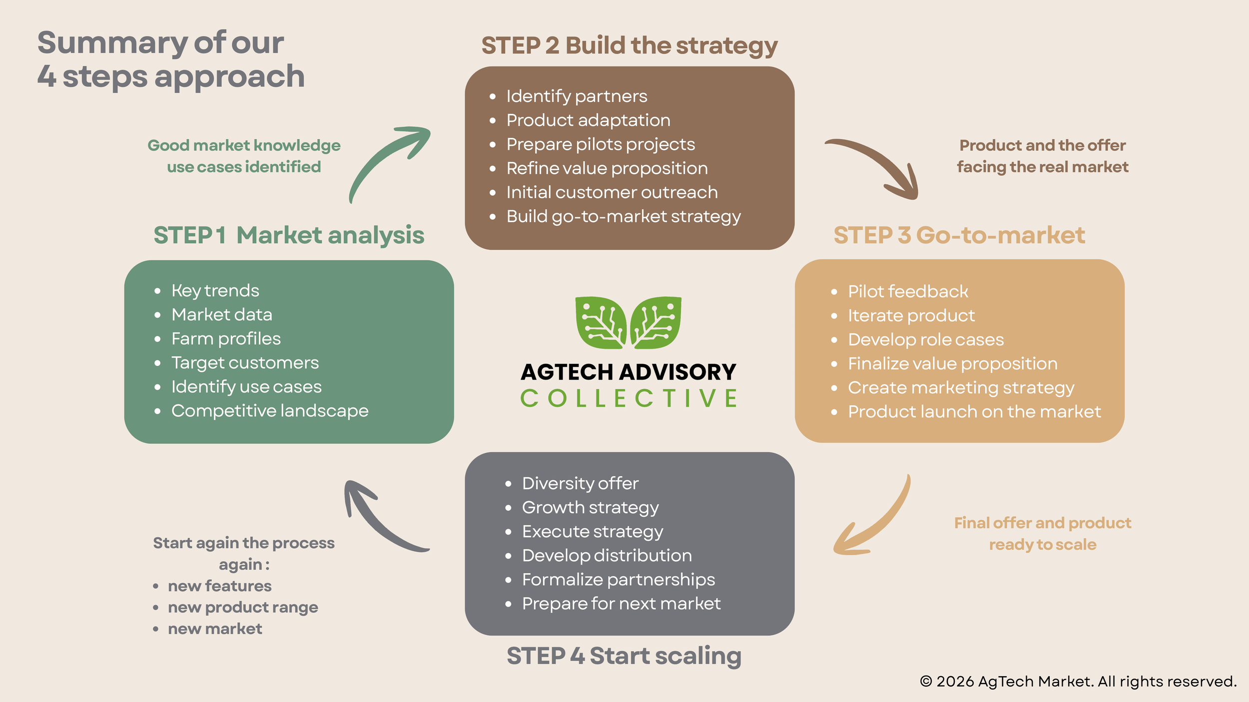 Over the past seven episodes, we’ve explored the challenges, strategies, and success stories of AgTech innovation. But how do all these pieces fit together? With AgTech Marketand theAgTech Collective, we’ve developed a 4-step method that guides innovators through every stage of their journey—from market analysis to scaling globally.