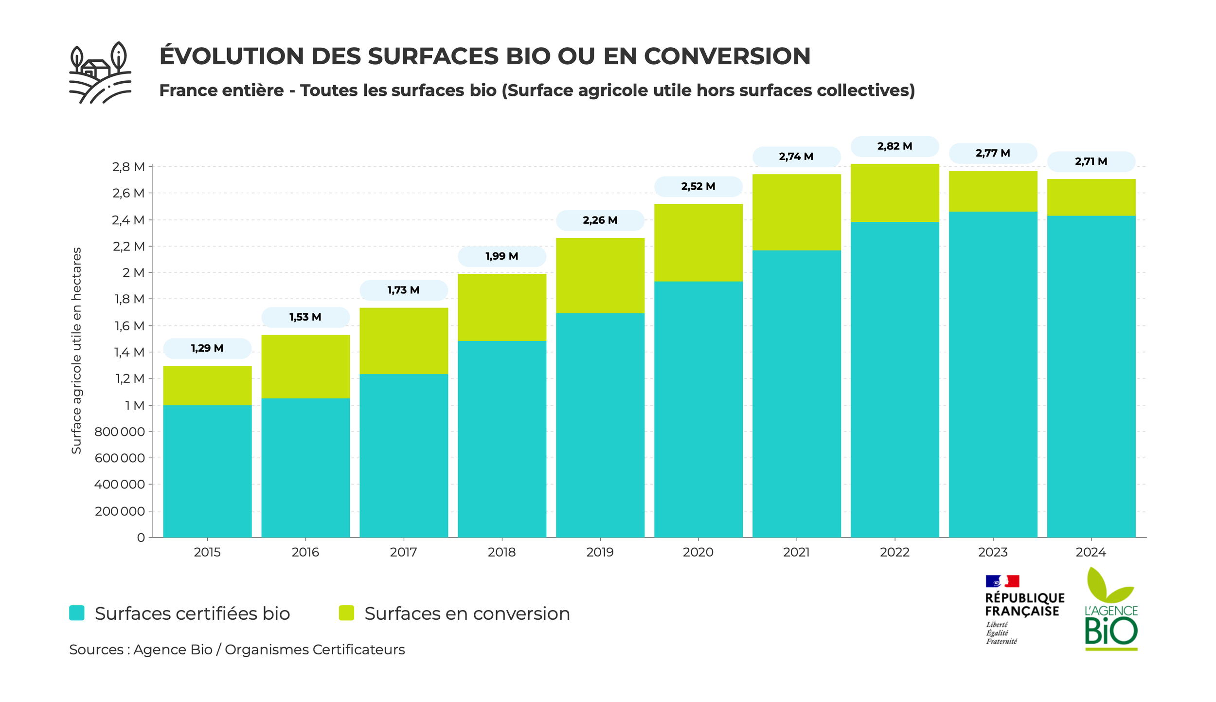 It's no longer a surprise that organic production has been booming for over 10 years in Europe and France. This change in production is driven by consumer demand for healthier products. But it is also driven by the political system, which, through the distribution of grants, is pushing farmers to review their production model.